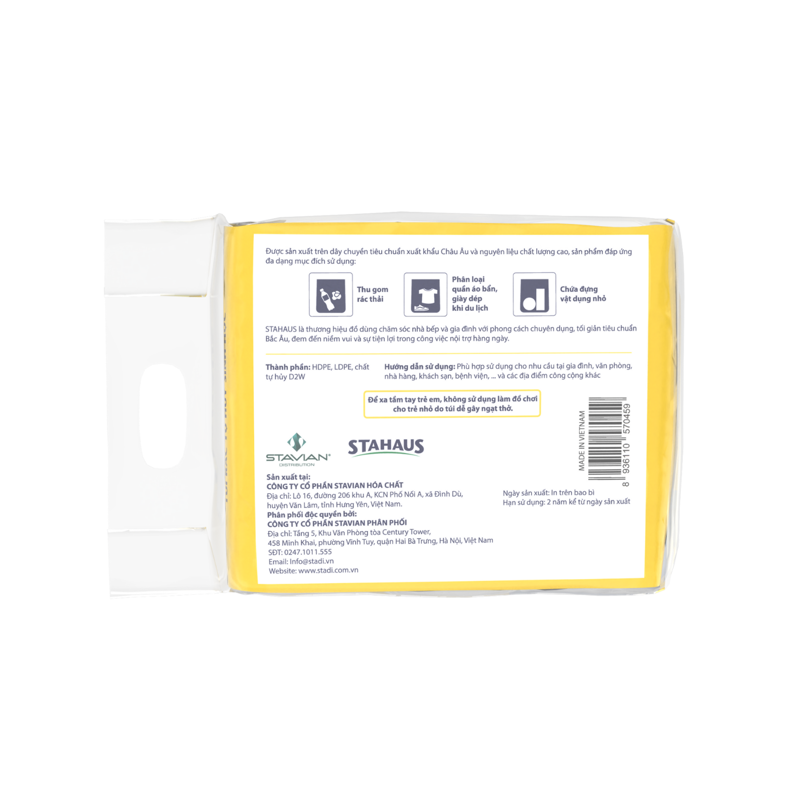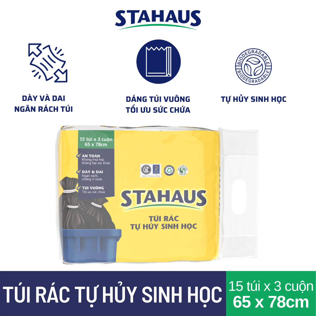 Túi rác đen STAHAUS là giải pháp tiện lợi để giữ vệ sinh nhà cửa, không gian sống và làm việc. Sản phẩm chứa thành phần tự hủy sinh học, thân thiện môi trường.