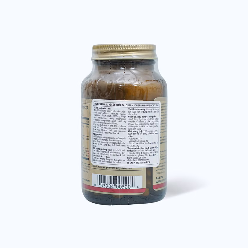 Viên Bổ Sung Khoáng Chất Solgar Calcium Magnesium Plus Zinc (Chai 100 viên) là gì?