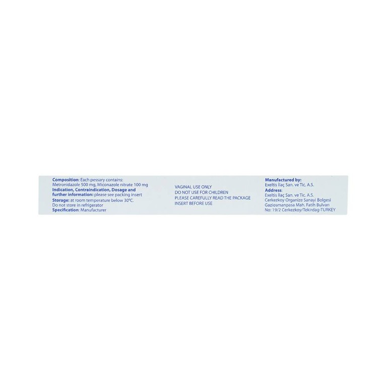 Sự hấp thu miconazol nitrat qua đường âm đạo rất thấp (gần 1,4% liều). Sinh khả dụng của metronidazol qua đường này là 20% so với đường uống.