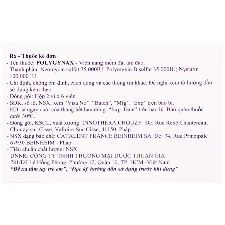 Thành phần của Viên đặt âm đạo Polygynax Innothera