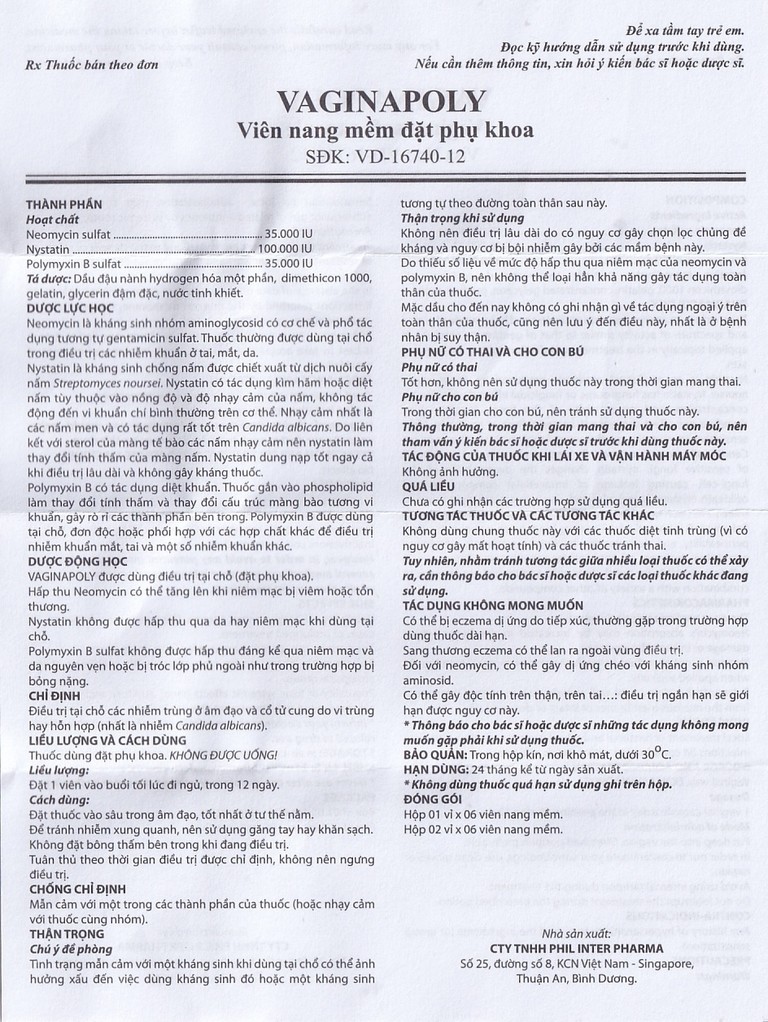 VAGINAPOLY được dùng điều trị tại chỗ (đặt phụ khoa).