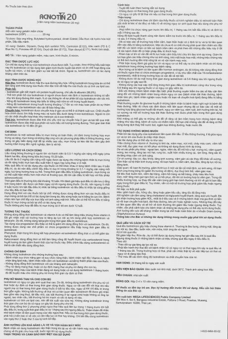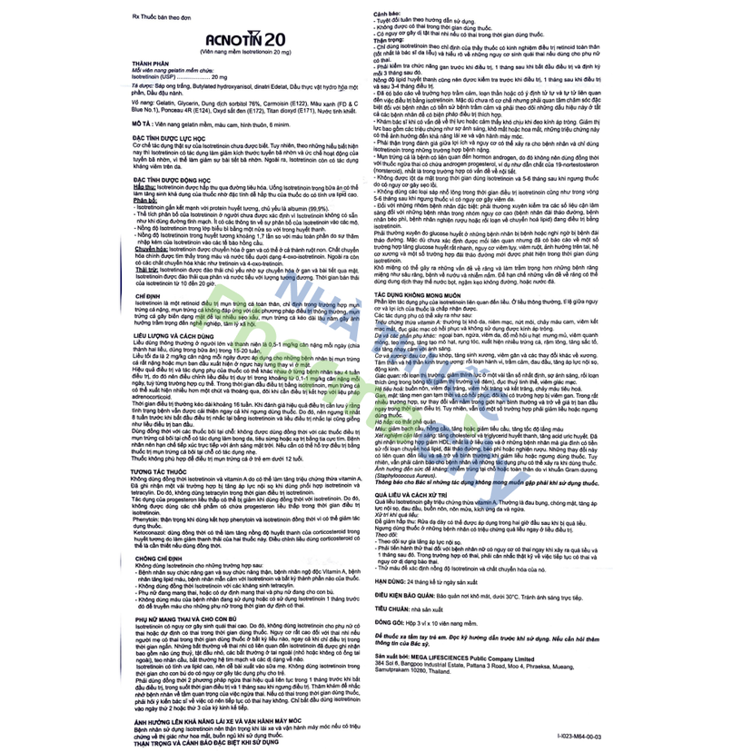 Viên nang Acnotin 20mg điều trị các dạng mụn trứng cá nặng (3 vỉ x 10 viên)