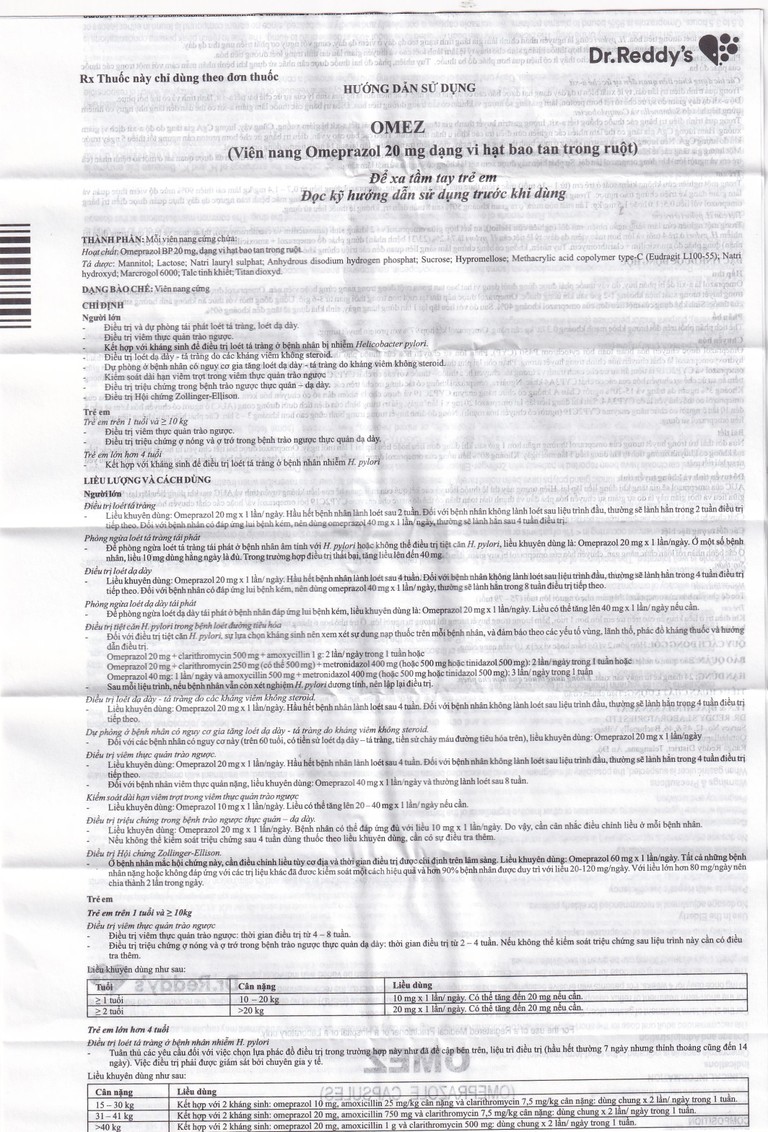 Viên nang cứng Omez 20mg Dr.Reddy’s điều trị và dự phòng tái phát loét tá tràng (2 vỉ x 10 viên)