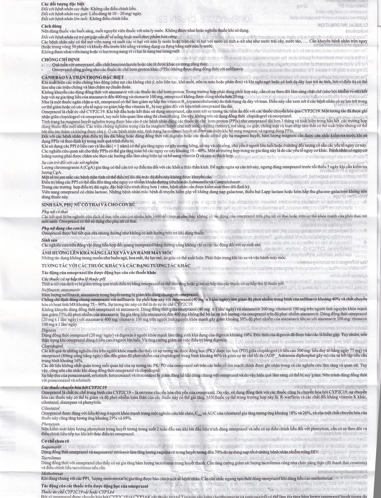 Có thể cần phải giảm liều đối với bệnh nhân suy chức năng gan, vì omeprazole chuyển hóa mạnh trong gan và tốc độ thải trừ kéo dài hơn so với bệnh nhân bình thường.