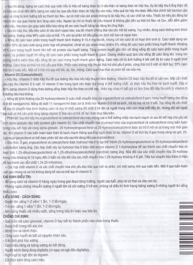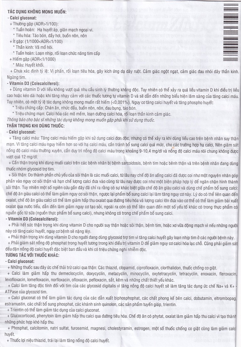 • Quá mẫn với calci gluconat, vitamin D hay bất kỳ thành phần nào chứa trong thuốc.