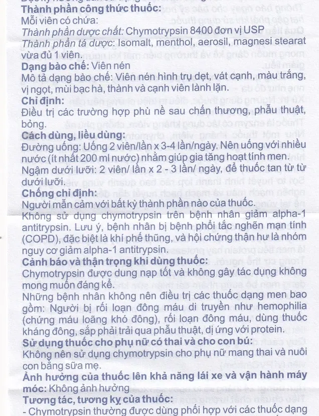 Thuốc là enzym có tác dụng kháng viêm, chống phù nề.