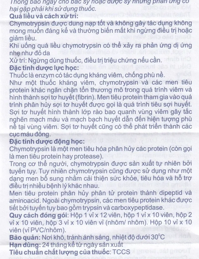 Không có bất kỳ tác dụng không mong muốn lâu dài nào do sử dụng chymotrypsin ngoại trừ đối tượng đã nêu trong mục thận trọng khi sử dụng.