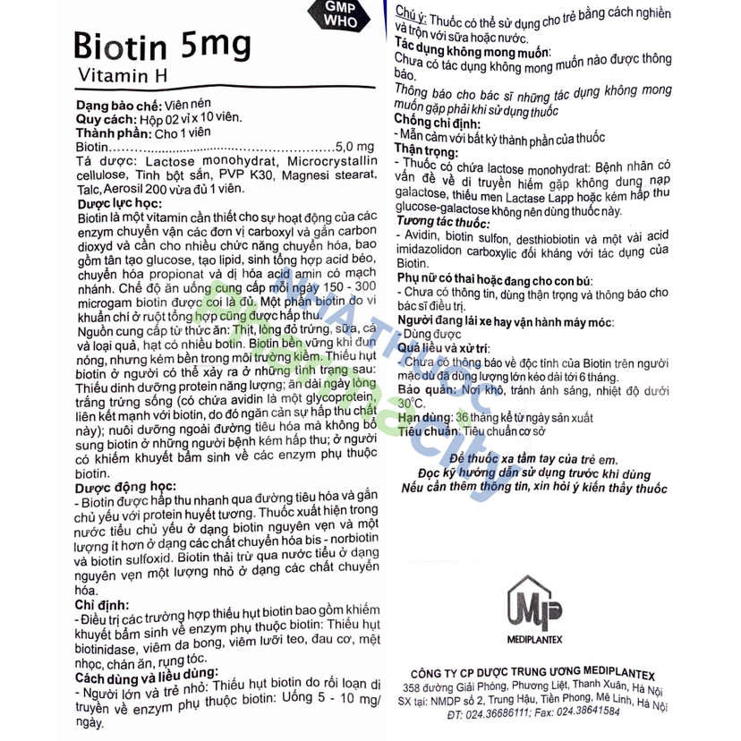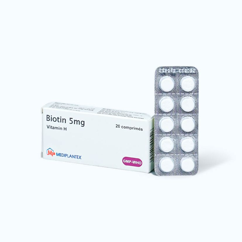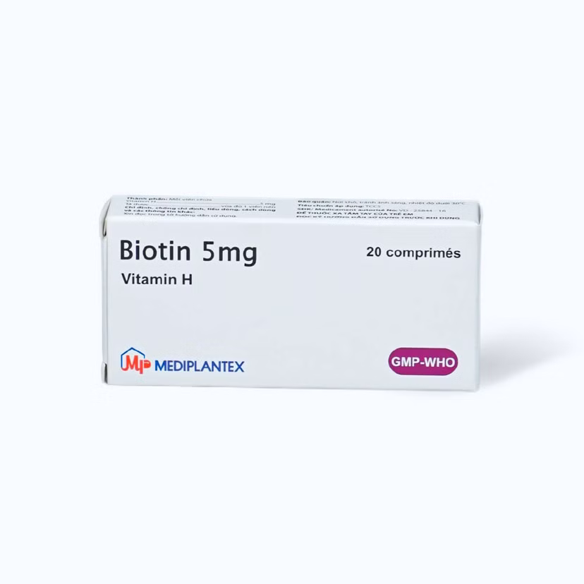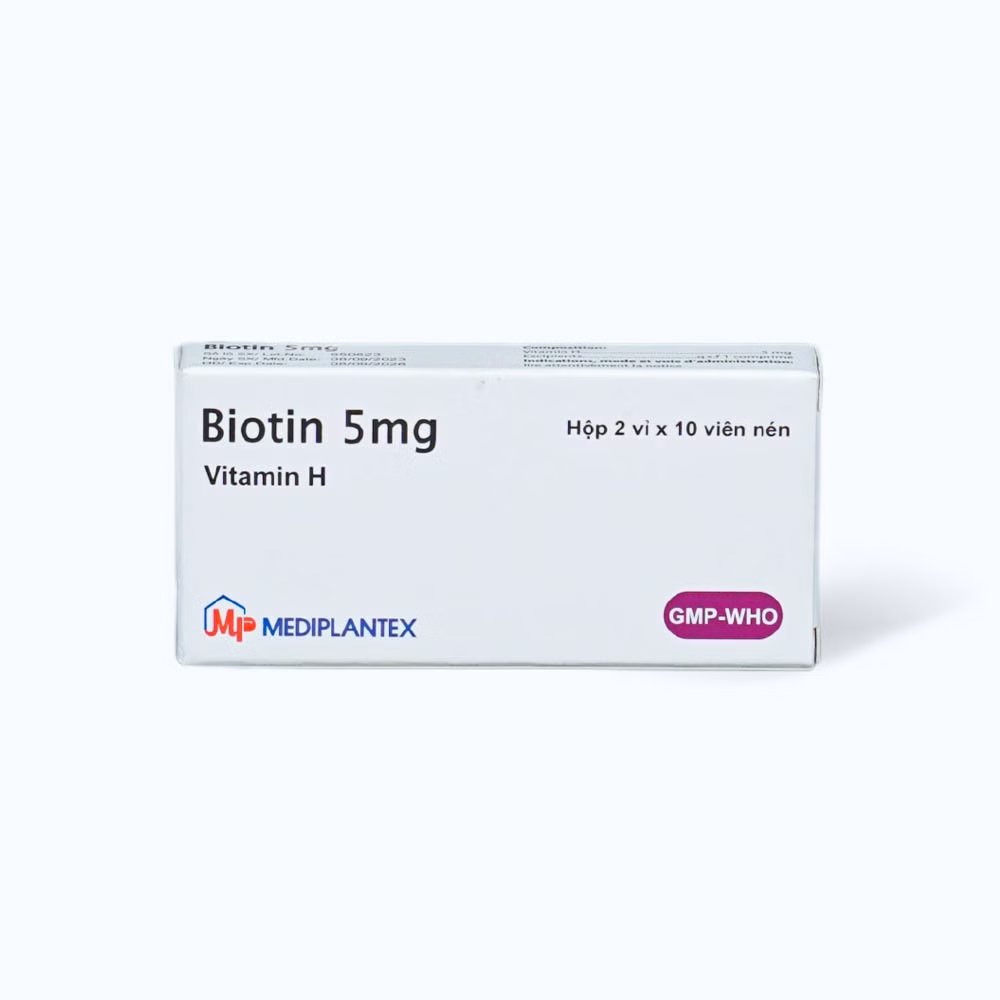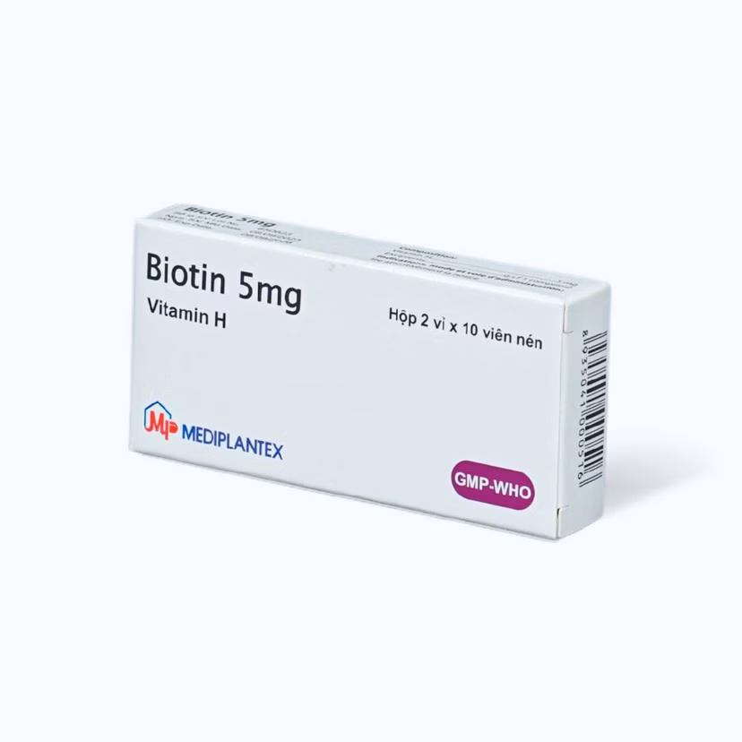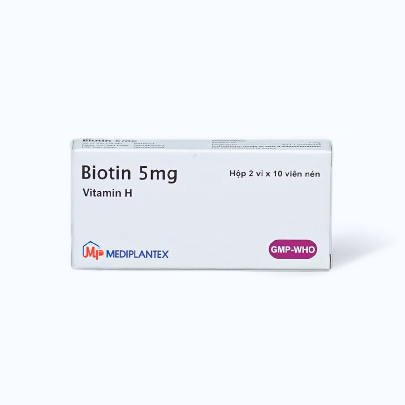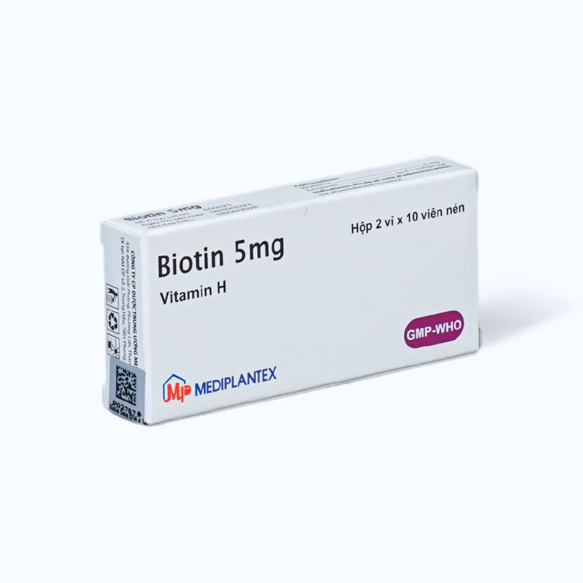 Viên nén Biotin 5mg rụng tóc, viêm da bong, thiếu hụt vitamin H (2 vỉ x 10 viên)Viên nén Biotin 5mg rụng tóc, viêm da bong, thiếu hụt vitamin H (2 vỉ x 10 viên)
