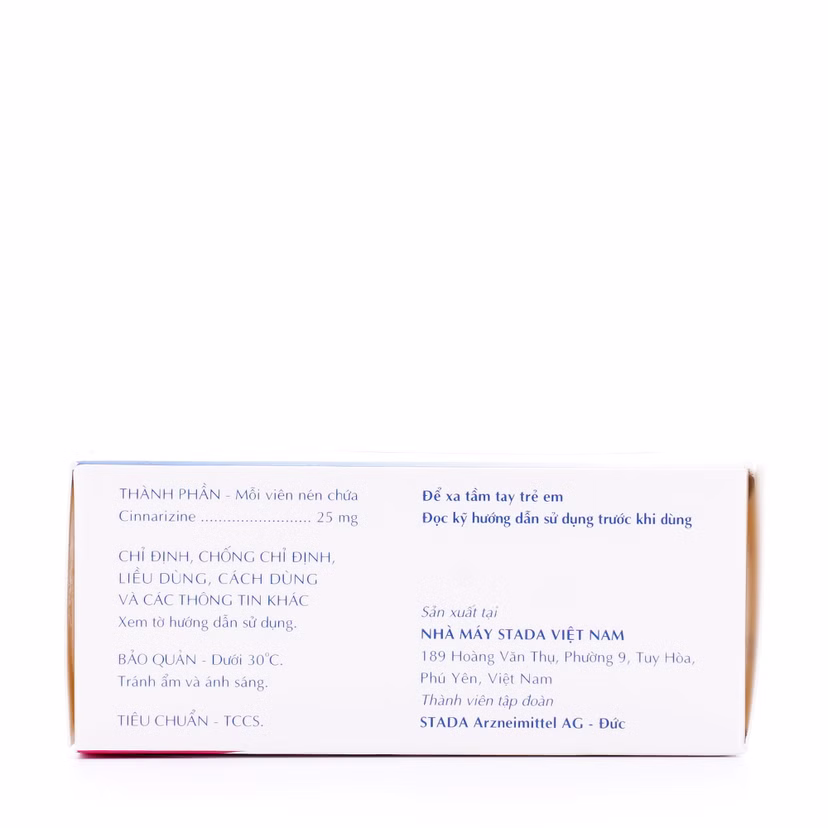 Viên nén Cinnarizine 25 mg STADA điều trị rối loạn tiền đình, say tàu xe (10 vỉ x 10 viên)SẢN PHẨM