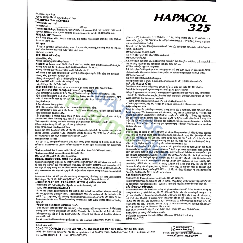 Viên nén Hapacol 325mg giảm đau, hạ sốt (chai 100 viên)Viên nén Hapacol 325mg giảm đau, hạ sốt (chai 100 viên)