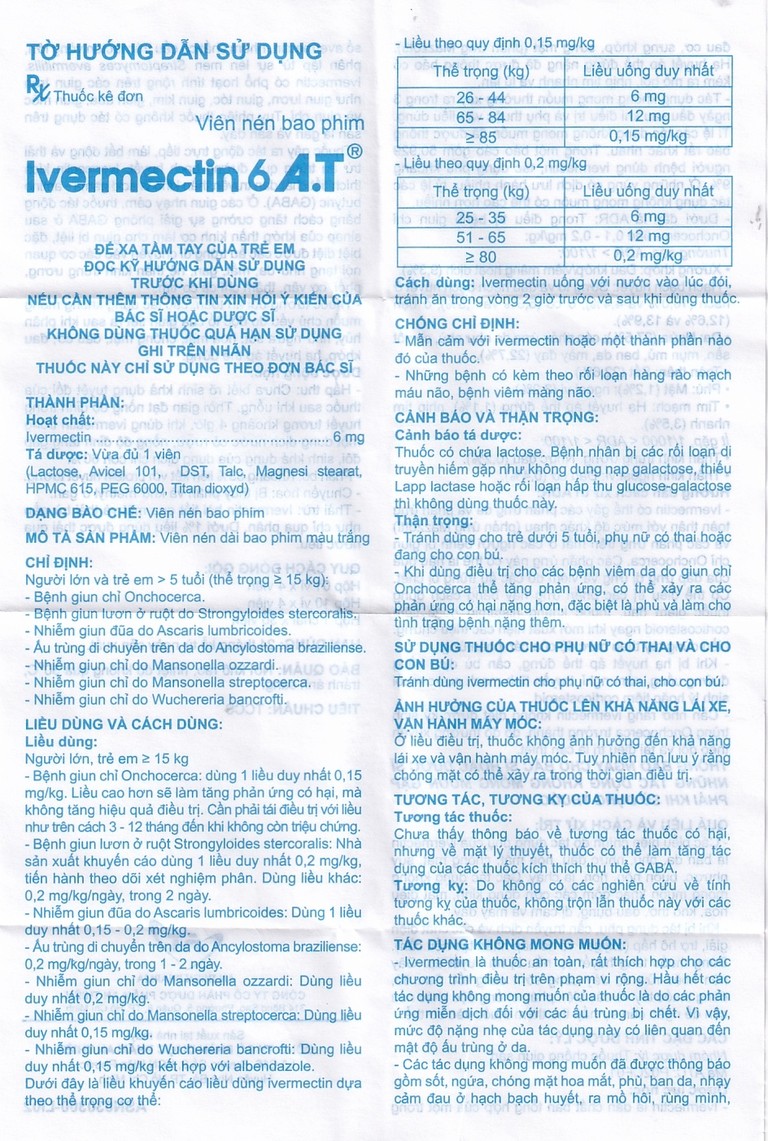 Viên nén Ivermectin 6mg A.T hỗ trợ điều trị bệnh nhiễm ký sinh trùng (1 vỉ x 4 viên)