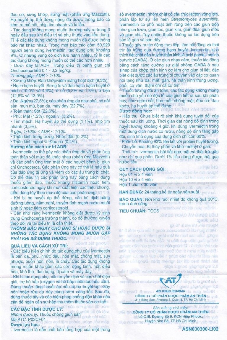 Nhiễm giun chỉ do Mansonella ozzardi: Dùng liều duy nhất 0,2 mg/kg.