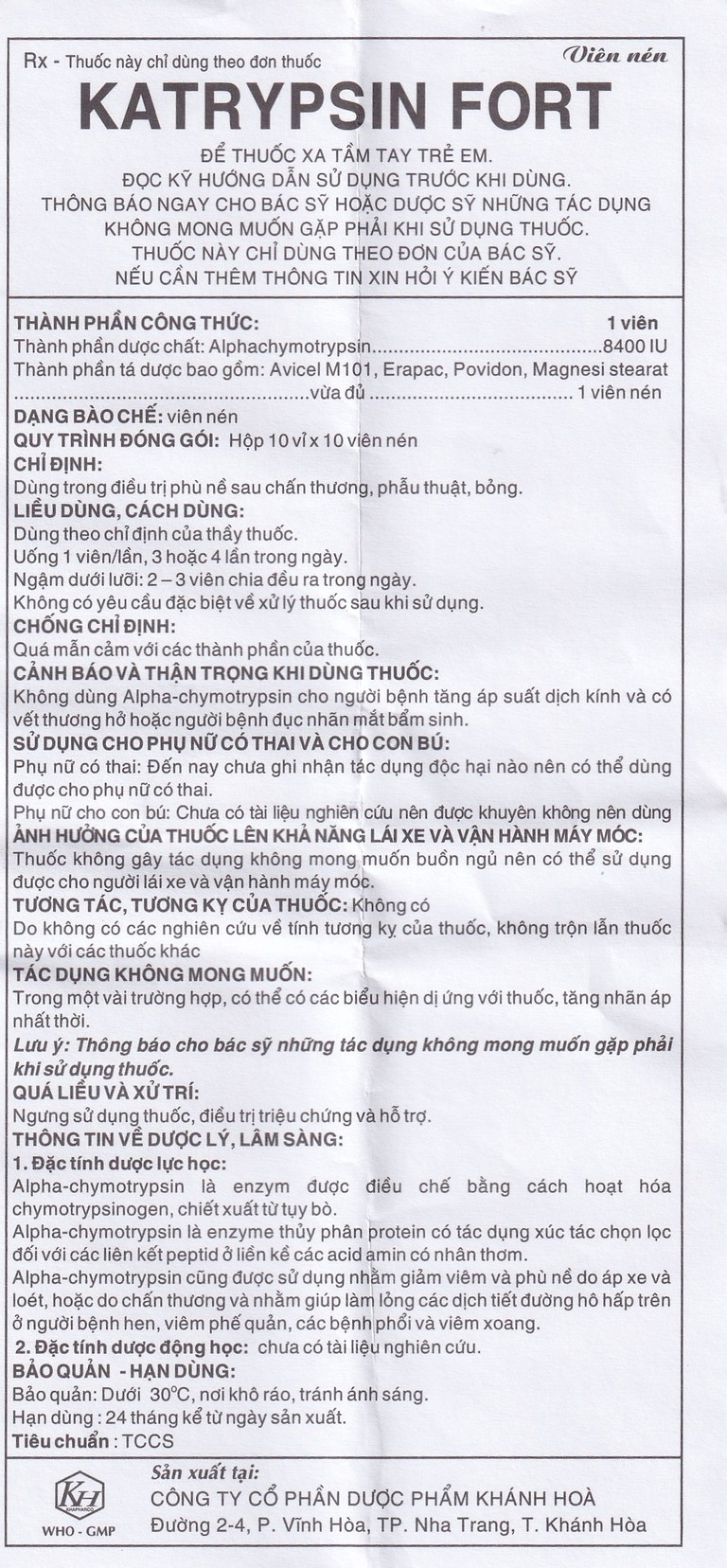 Thuốc Katrypsin Fort được chỉ định dùng trong điều trị phù nề sau chấn thương, phẫu thuật, bỏng.