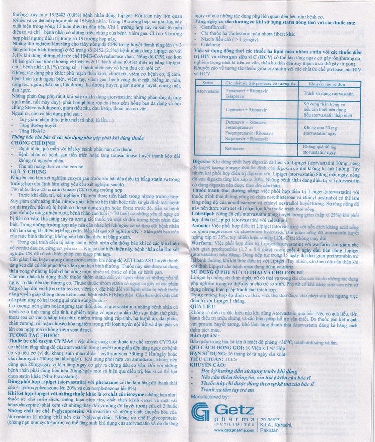 Digoxin: Khi dùng đồng thời nhiều liều atorvastatin và digoxin, nồng độ digoxin trong huyết tương ở trạng thái ổn định tăng khoảng 20%. Bệnh nhân dùng digoxin nên được theo dõi thích hợp.