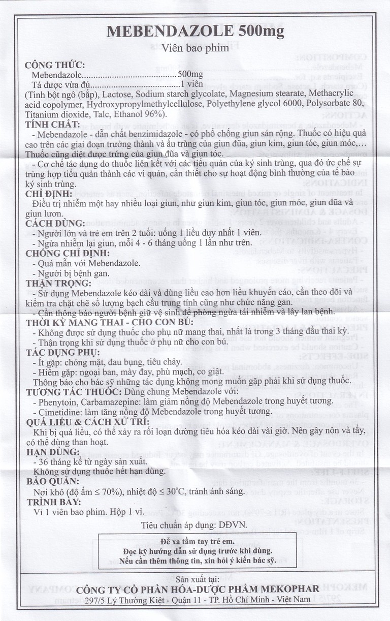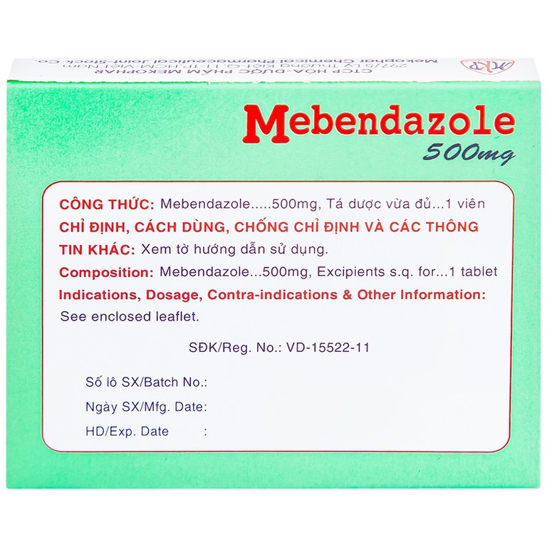 Viên nén Mebendazole 500mg Mekophar điều trị nhiễm một hay nhiều loại giun (1 viên)SẢN PHẨM
