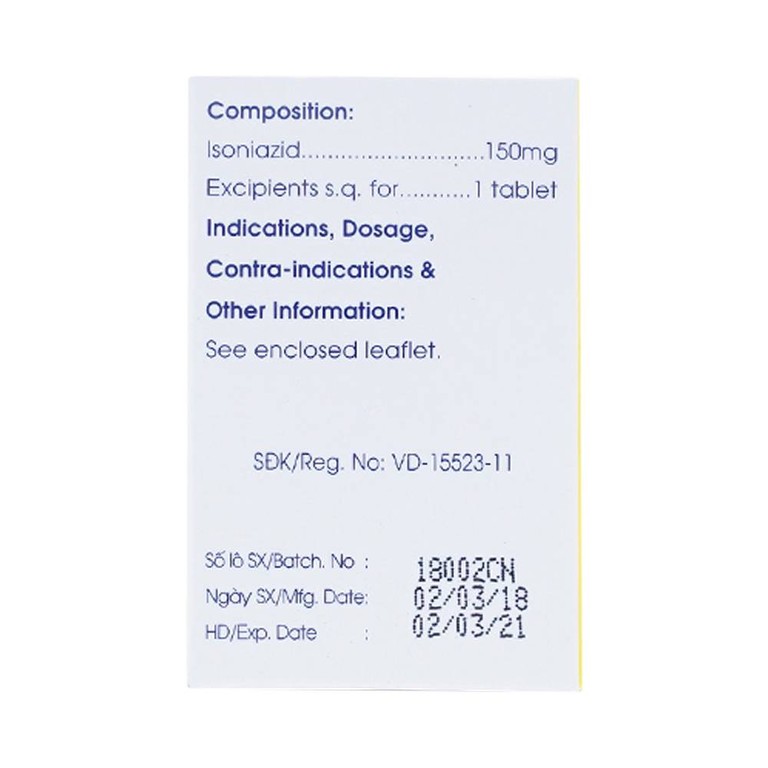 Uống 5mg/kg/24 giờ, tối đa 300mg/24 giờ, ngày 1 lần trong 6 – 12 tháng.