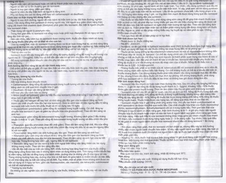 Viên nén Meko INH 150 Mekophar phòng và điều trị lao phổi (100 viên)
