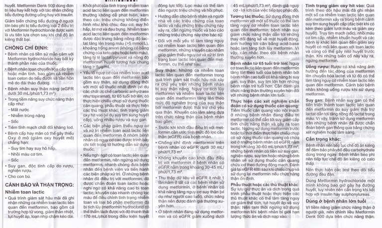 Dùng ở bệnh nhân lớn tuổi: Vì tiềm năng giảm chức năng thận ở người già, nên chỉnh liều Metformin Denk 500 dựa trên chức năng thận. Vì lý do này cần thiết đánh giá thường xuyên chức năng thận.