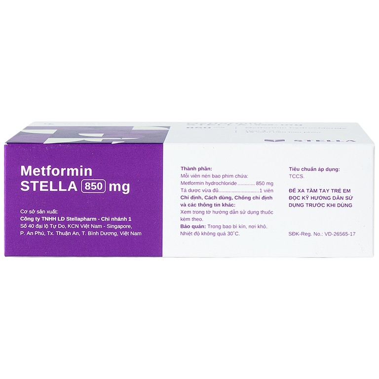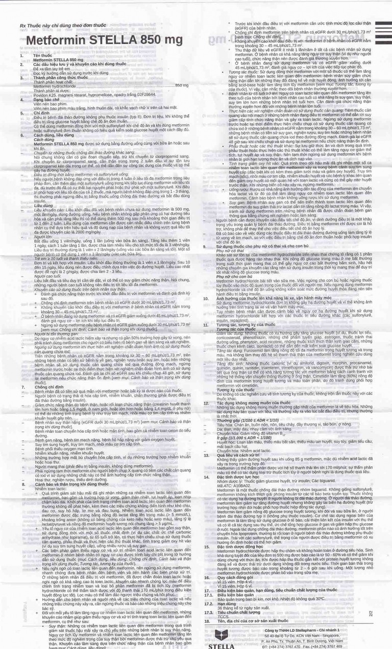 Viên nén Metformin Stella 850mg điều trị bệnh đái tháo đường (4 vỉ x 15 viên)