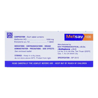 Viên nén Metsav 1000 Savi điều trị bệnh đái tháo đường tuýp 2