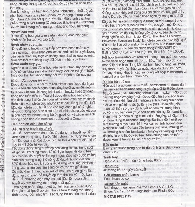 Trẻ em và thiếu niên: Chưa thiết lập được tính an toàn và hiệu quả của Micardis đối với việc sử dụng ở trẻ dưới 18 tuổi.