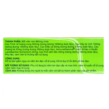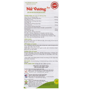 • Viên uống Nữ Vương có thành phần là các loại thảo dược tự nhiên, đồng thời bổ sung hoạt chất immune gamma – dược chất sinh học mới của Mỹ, là giải pháp chống viêm nhiễm phụ khoa và ngăn ngừa các bệnh lý phụ khoa hiệu quả.