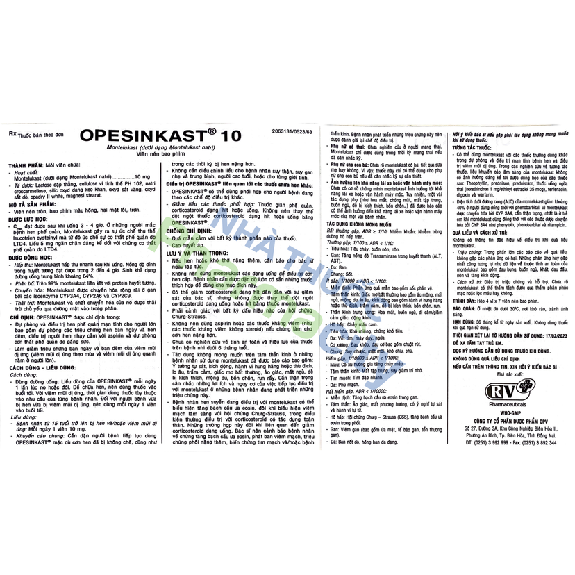 Opesinkast 10 là một thuốc kê đơn, thuộc nhóm thuốc tác dụng trên đường hô hấp. Thuốc Opesinkast 10 có thành phần hoạt chất chính là montelukast.