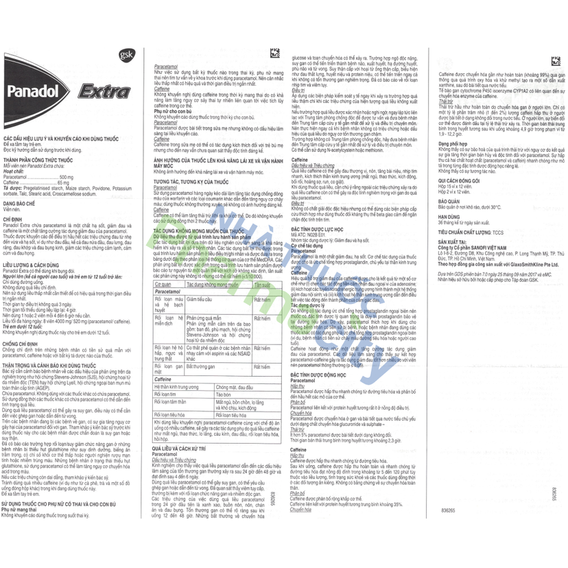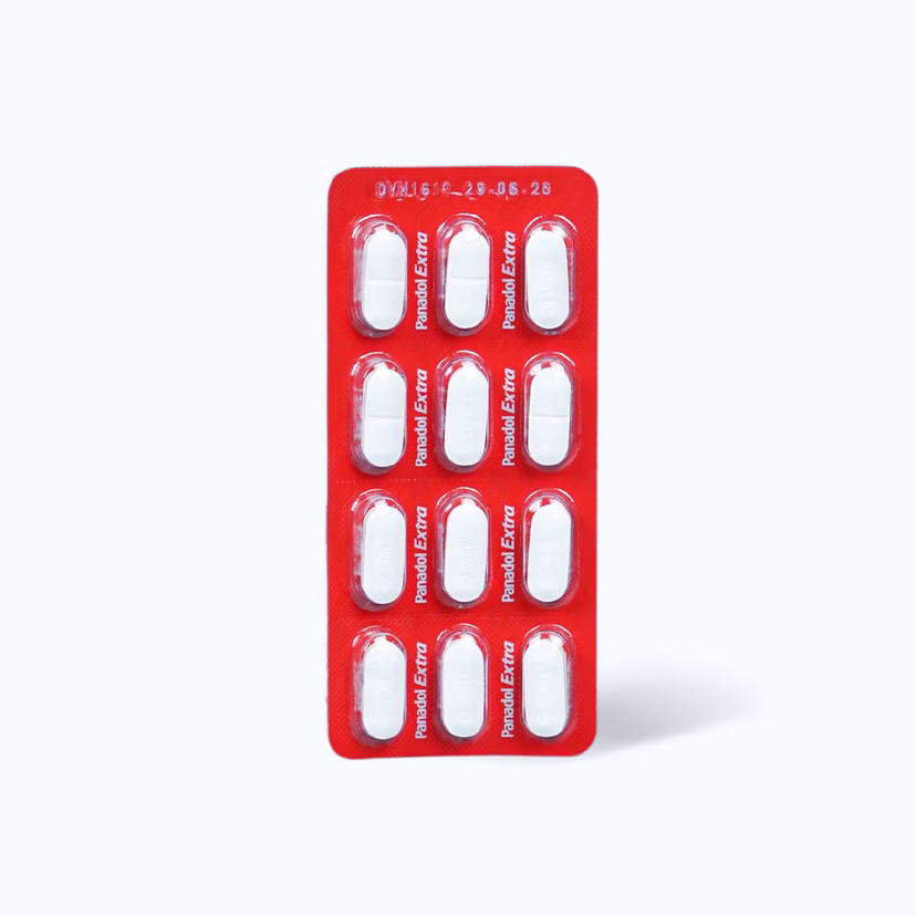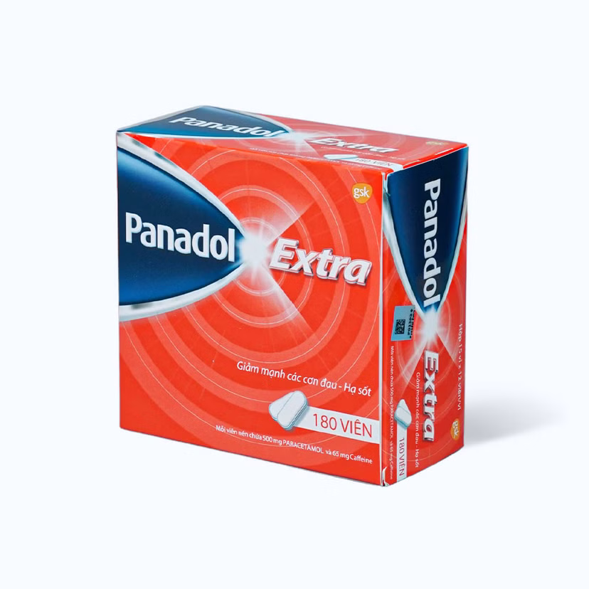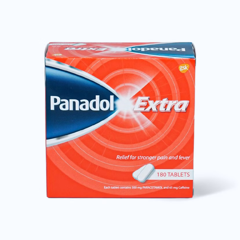 Panadol Extra được sản xuất bởi GlaxoSmithKline (GSK) chứa paracetamol là một chất hạ sốt, giảm đau và caffeine là một chất tăng cường tác dụng giảm đau của paracetamol. Thuốc được khuyến cáo để điều trị hầu hết các triệu chứng đau từ nhẹ đến vừa và hạ sốt, ví dụ như đau đầu, kể cả đau nửa đầu, đau lưng, đau răng, đau khớp và đau bụng kinh, giảm các triệu chứng cảm lạnh, cảm cúm và đau họng.