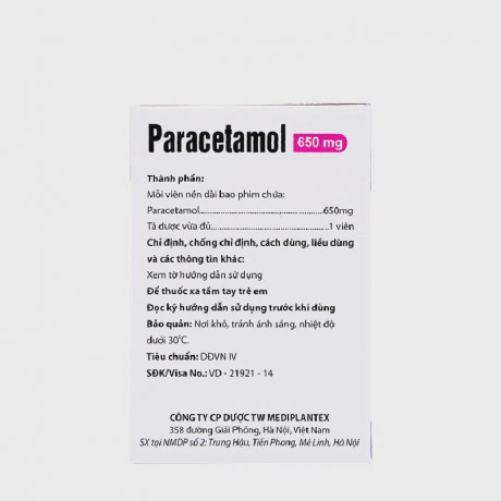 Viên nén Paracetamol 650mg Mediplantex giảm đau từ nhẹ đến vừa và hạ sốt (10 vỉ x 10 viên)SẢN PHẨM
