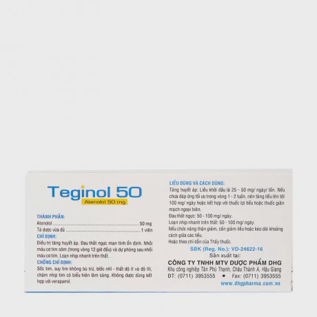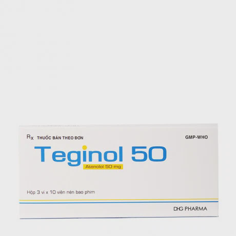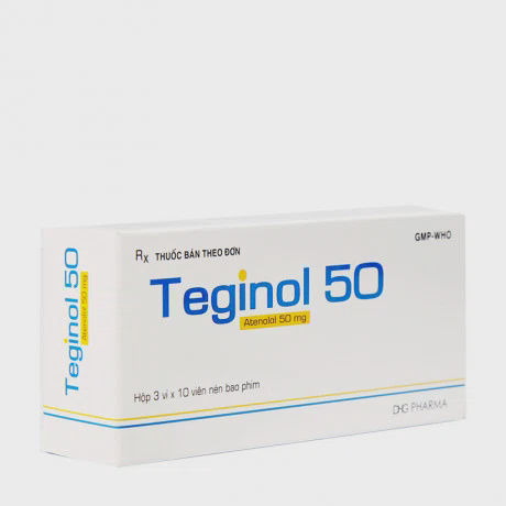 Viên nén Teginol 50mg điều trị tăng huyết áp, đau thắt ngực (3 vỉ x 10 viên)