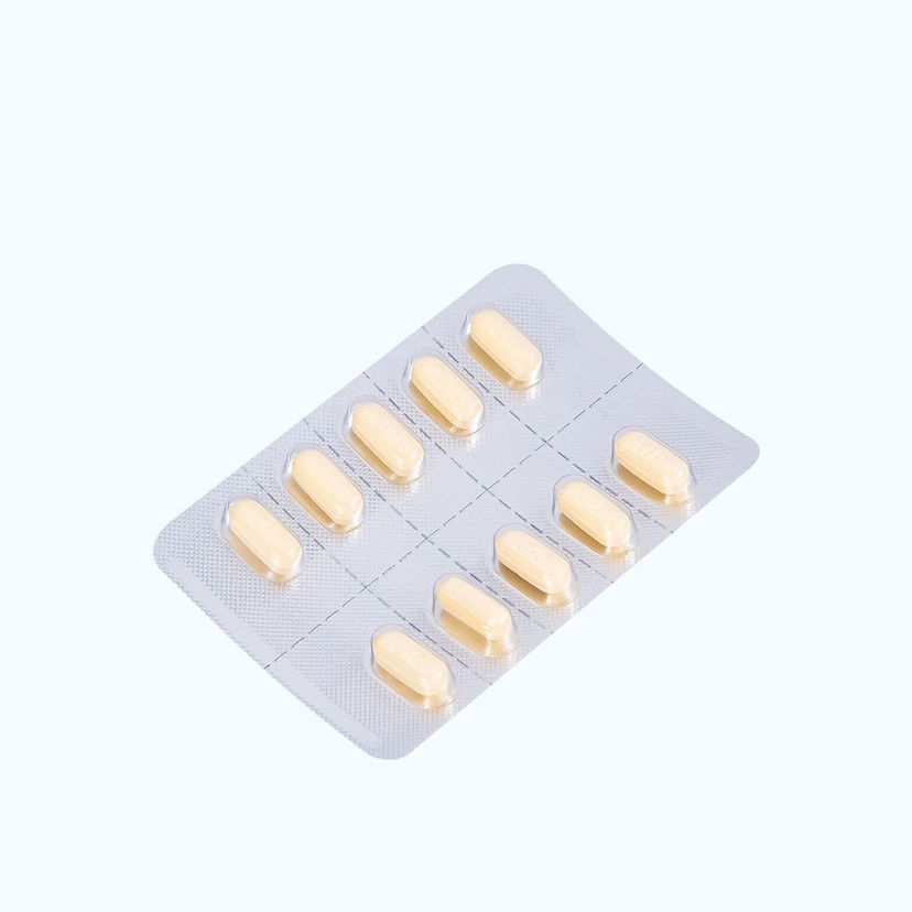 - Tá dược: bột cellulose, tinh bột tiền gelatin hóa, tinh bột natri glycolat, tinh bột ngô, nước tinh khiết, magnesi stearat, OPADRY màu vàng nhạt và sáp camauba.