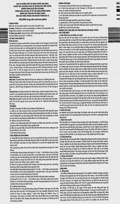 Viên nén Valiera 2mg trị rối loạn vận mạch, teo âm hộ âm đạo, giảm tiết estrogen (1 vỉ x 30 viên)
