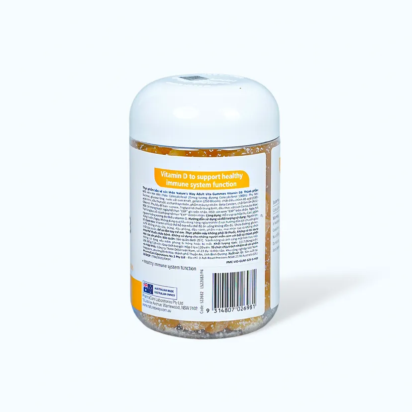 Viên nhai Nature's Way Adult Vita Gummies Vitamin D3 hỗ trợ hấp thu canxi (Hộp 120 viên)Viên nhai Nature’s Way Adult Vita Gummies Vitamin D3 hỗ trợ hấp thu canxi (Hộp 120 viên)