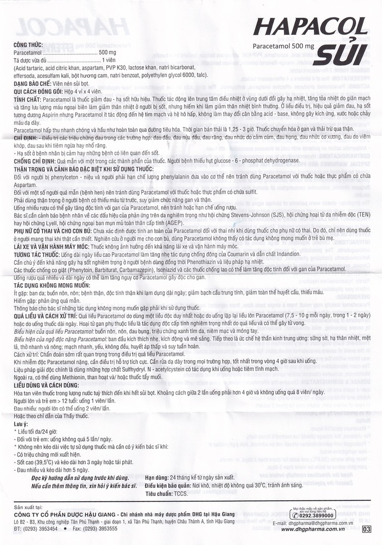 Viên sủi Hapacol 500 DHG giảm đau, hạ sốt (4 vỉ x 4 viên)Viên sủi Hapacol 500 DHG giảm đau, hạ sốt (4 vỉ x 4 viên)