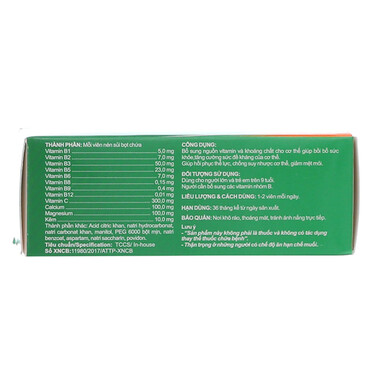 • Vitamin nhóm B (B1, B2, B3, B5, B6, B8, B9, B12): Hỗ trợ chuyển hóa năng lượng, cải thiện chức năng thần kinh, giúp giảm căng thẳng và mệt mỏi.