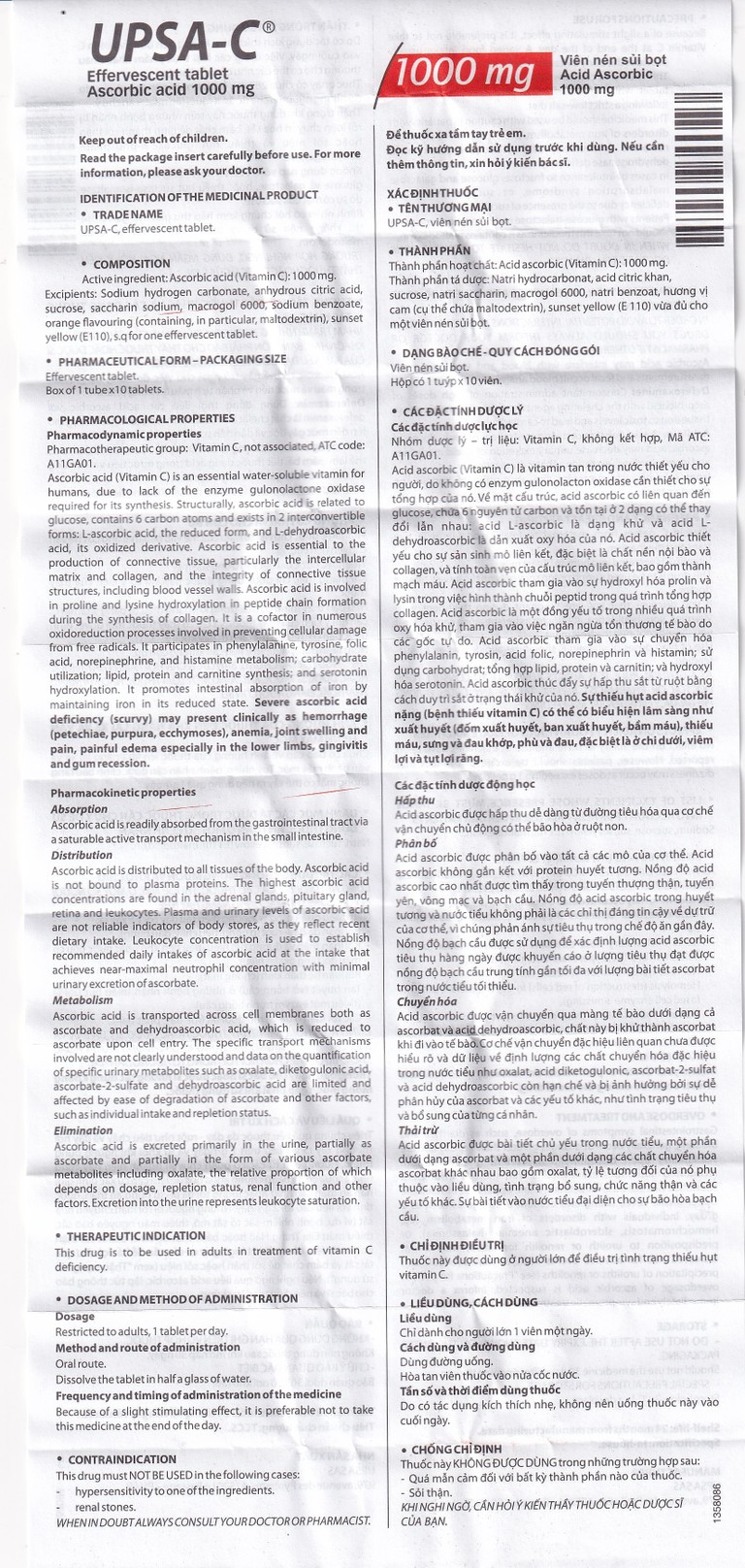 Thành phần của Viên sủi UPSA-C