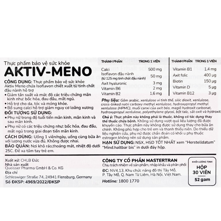 Active Meno chứa Isoflavon chiết xuất từ tinh chất đậu nành hỗ trợ: