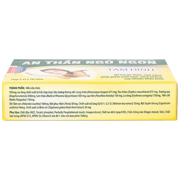Viên uống An Thần Ngủ Ngon Tâm Bình hỗ trợ an thần, giúp dễ ngủ, ngủ ngon, giảm chứng mất ngủ (2 vỉ x 10 viên)SẢN PHẨM