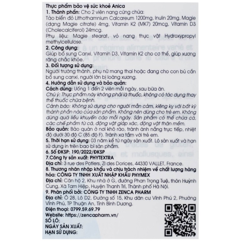 Thực phẩm bảo vệ sức khỏe Anica giúp bổ sung Canxi, Vitamin D3, Vitamin K2 cho cơ thể, giúp xương răng chắc khỏe.