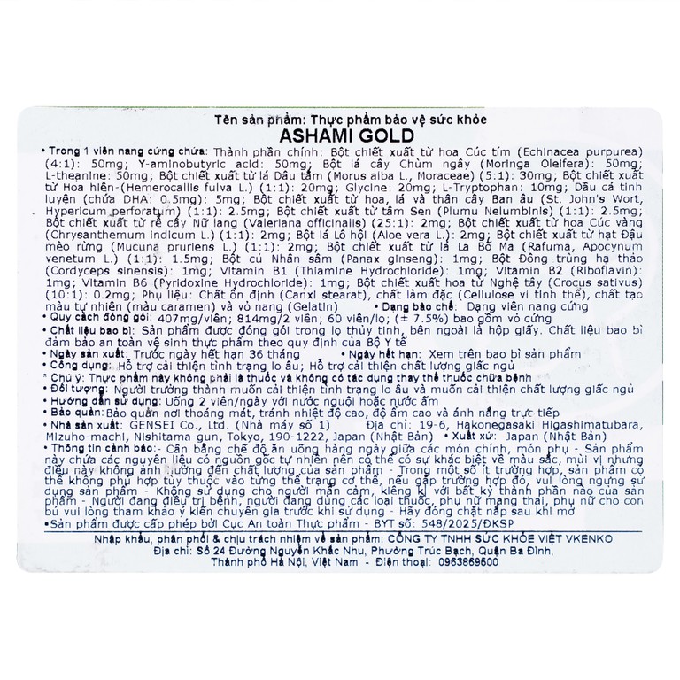 Viên uống Ashami Gold hỗ trợ cải thiện tình trạng lo âu, cải thiện giấc ngủ (60 viên)SẢN PHẨM