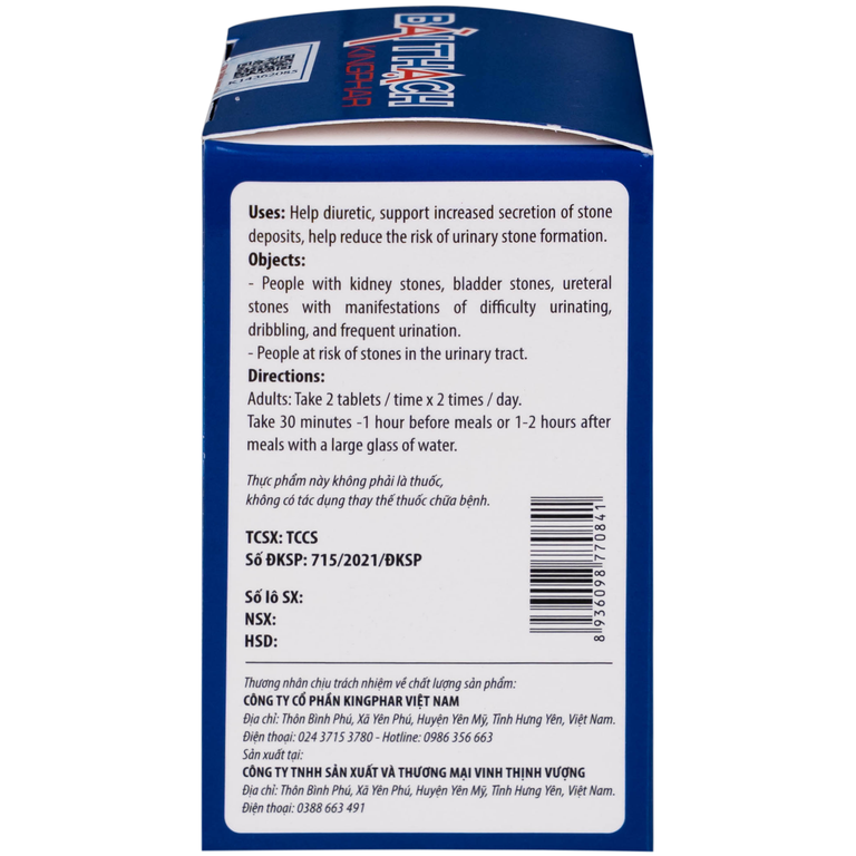 Viên uống Bài Thạch Kingphar lợi tiểu, hỗ trợ giảm nguy cơ viêm đường tiết niệu (60 viên)