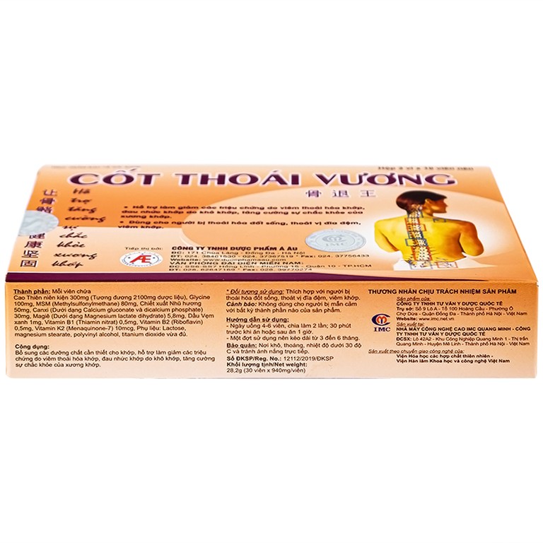 Viên uống Cốt Thoái Vương Á Âu hỗ trợ giảm triệu chứng viêm thoái hóa khớp (3 vỉ x 10 viên)Viên uống Cốt Thoái Vương Á Âu hỗ trợ giảm triệu chứng viêm thoái hóa khớp (3 vỉ x 10 viên)