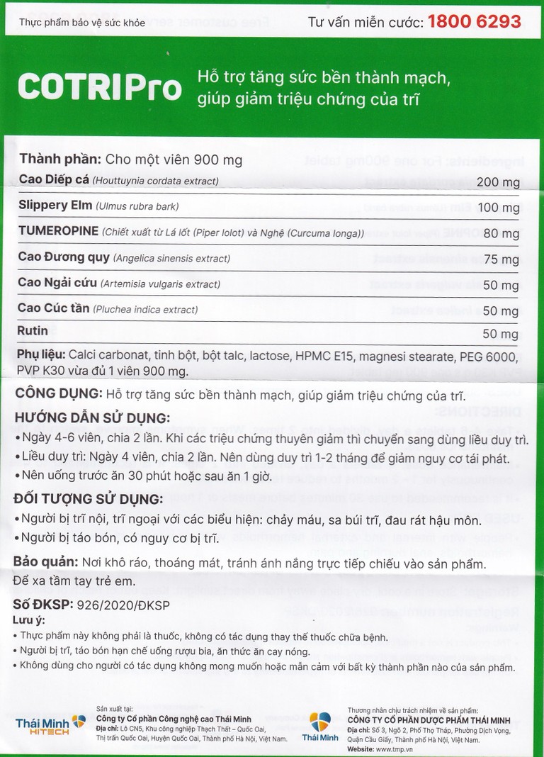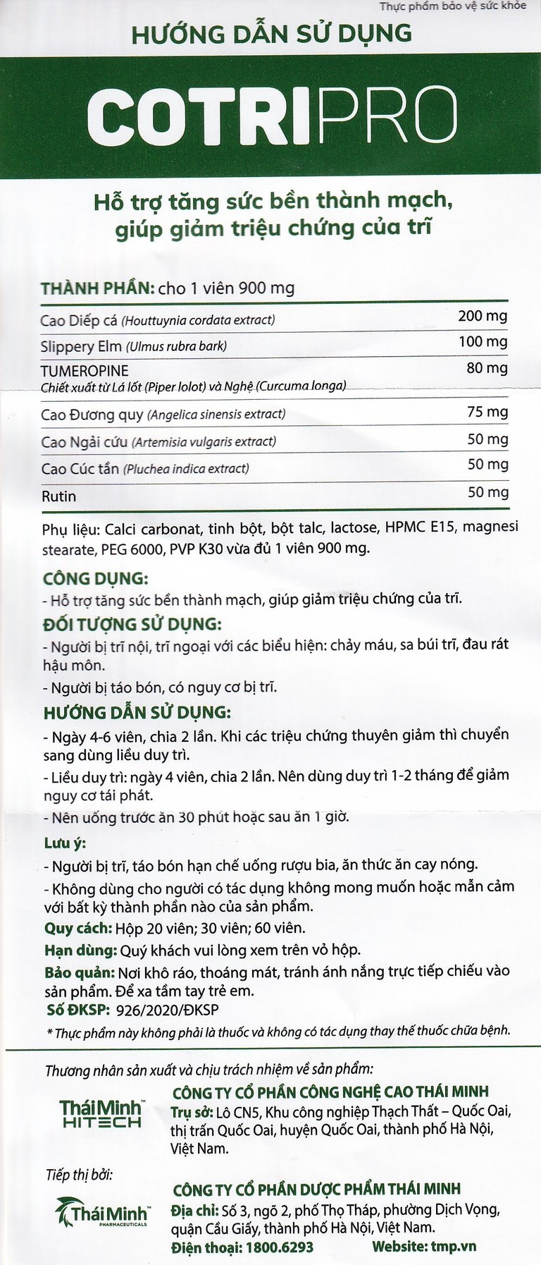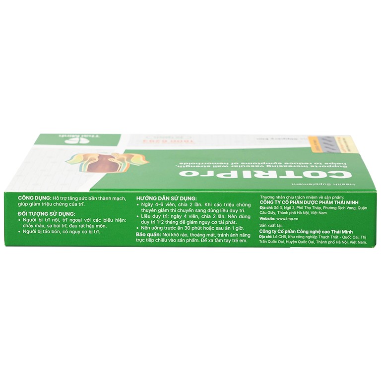 Viên uống Cotripro Thái Minh hỗ trợ tăng sức bền thành mạch, giảm triệu chứng của trĩ (2 vỉ x 10 viên)SẢN PHẨM