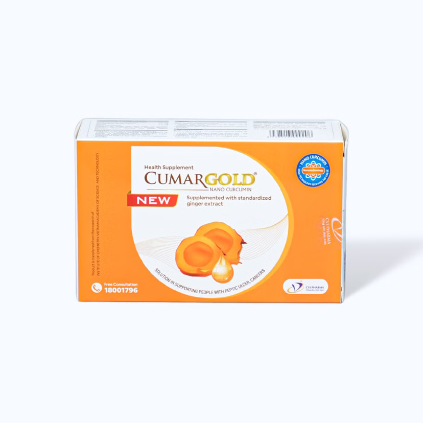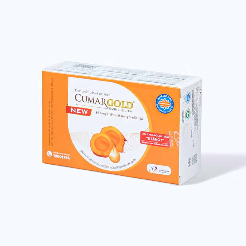 Viên uống CumarGold New là một sản phẩm chức năng được phát triển để hỗ trợ giảm viêm loét dạ dày, tá tràng. Sản phẩm này chủ yếu sử dụng tinh chất Curcumin từ nghệ, đã được nghiên cứu và chứng minh có hiệu quả trong việc hỗ trợ làm giảm các triệu chứng liên quan đến dạ dày.