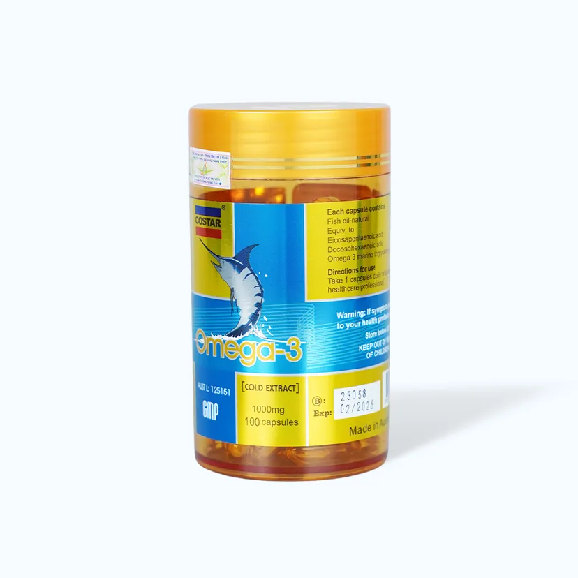 Viên uống dầu cá Costar Omega 3 1000mg bổ sung EPA và DHA (Lọ 100 viên)Viên uống dầu cá Costar Omega 3 1000mg bổ sung EPA và DHA (Lọ 100 viên)