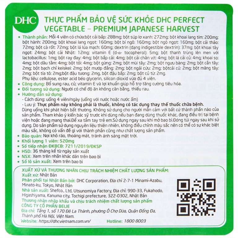 Công dụng của Thực phẩm bảo vệ sức khỏe DHC Perfect Vegetable – Premium Japanese Harvest