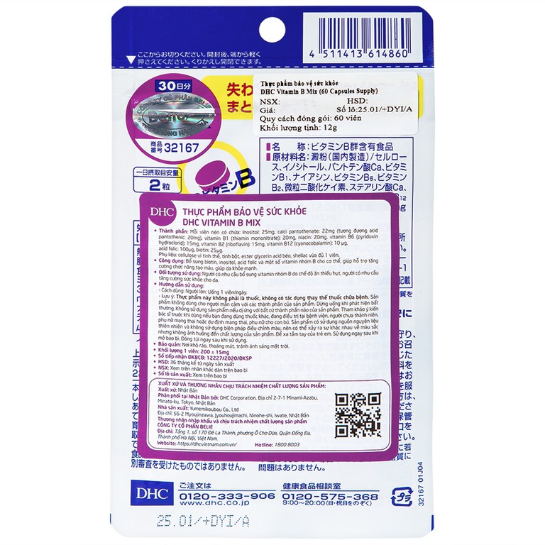 DHC Vitamin B Mix bổ sung biotin, inositol, acid folic và một số vitamin nhóm B cho cơ thể, giúp hỗ trợ tăng cường chức năng tạo máu, giúp da khỏe mạnh.