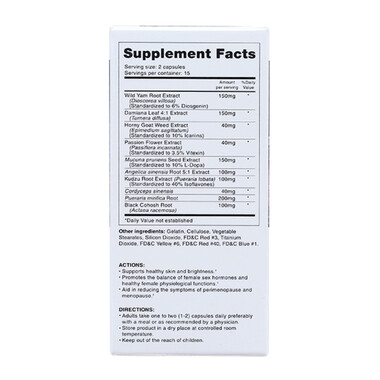 Viên uống tăng cường sinh lý nữ Lab Well Estro Her chứa các thành phần thảo dược quý có công dụng hỗ trợ và tăng cường khả năng sinh lý nữ như Wild Yam (củ Mài Dài), Mucuna Pruriens (Đậu Mèo), Horny Goat Weec (Dâm Dương Hoắc), Lá Damiana và Passion Flower (hoa Lạc Tiên), giúp cơ thể sản sinh nội tiết tố nữ Estrogen tự nhiên, cải thiện các triệu chứng tiền mãn kinh, mãn kinh (cáu gắt, lo âu, mất ngủ…), làm chậm quá trình lão hóa, tăng cường ham muốn tình dục ở nữ, chống mệt mỏi, lãnh cảm và khô âm đạo.