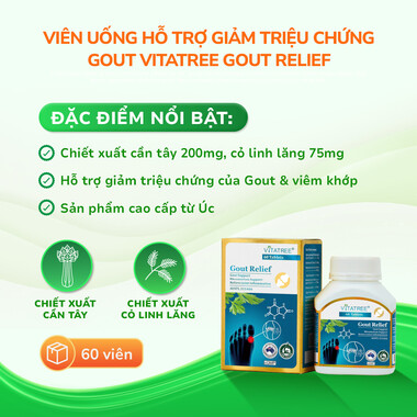 Viên uống Gout Relief Vitatree hỗ trợ giảm triệu chứng gout và viêm khớp (Hộp 60 viên)Viên uống Gout Relief Vitatree hỗ trợ giảm triệu chứng gout và viêm khớp (Hộp 60 viên)