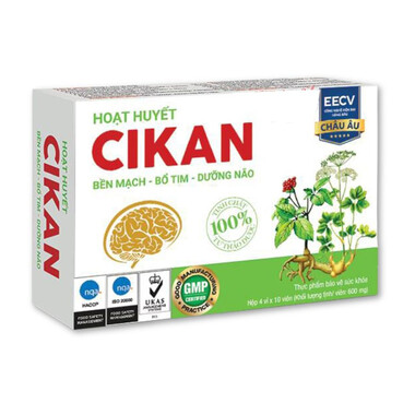 Hoạt Huyết Cikan là sản phẩm hỗ trợ bổ huyết giúp tăng cường tuần hoàn máu não và ngoại vi, hỗ trợ cải thiện thiểu năng tuần hoàn não, đồng thời giảm nguy cơ di chứng sau tai biến mạch máu não do tắc mạch.